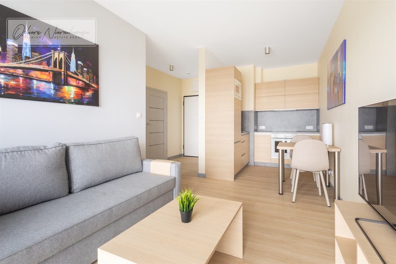 For rent a modern, fully furnished 1-bedroom apartment located in a new residential development in Zamienie (Anyżkowa Street), just next to Warsaw’s Ursynów district.