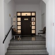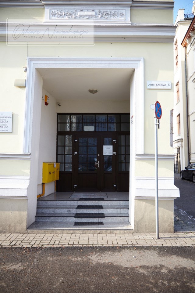 Do kamienicy wchodzimy przez szerokie dwuskrzydłowe drzwi. Szeroki korytarz prowadzi do pięknych i ergonomicznych, monolityczno- żelbetonowych schodów z balustradą, które są ciągiem komunikacyjnym kamienicy.