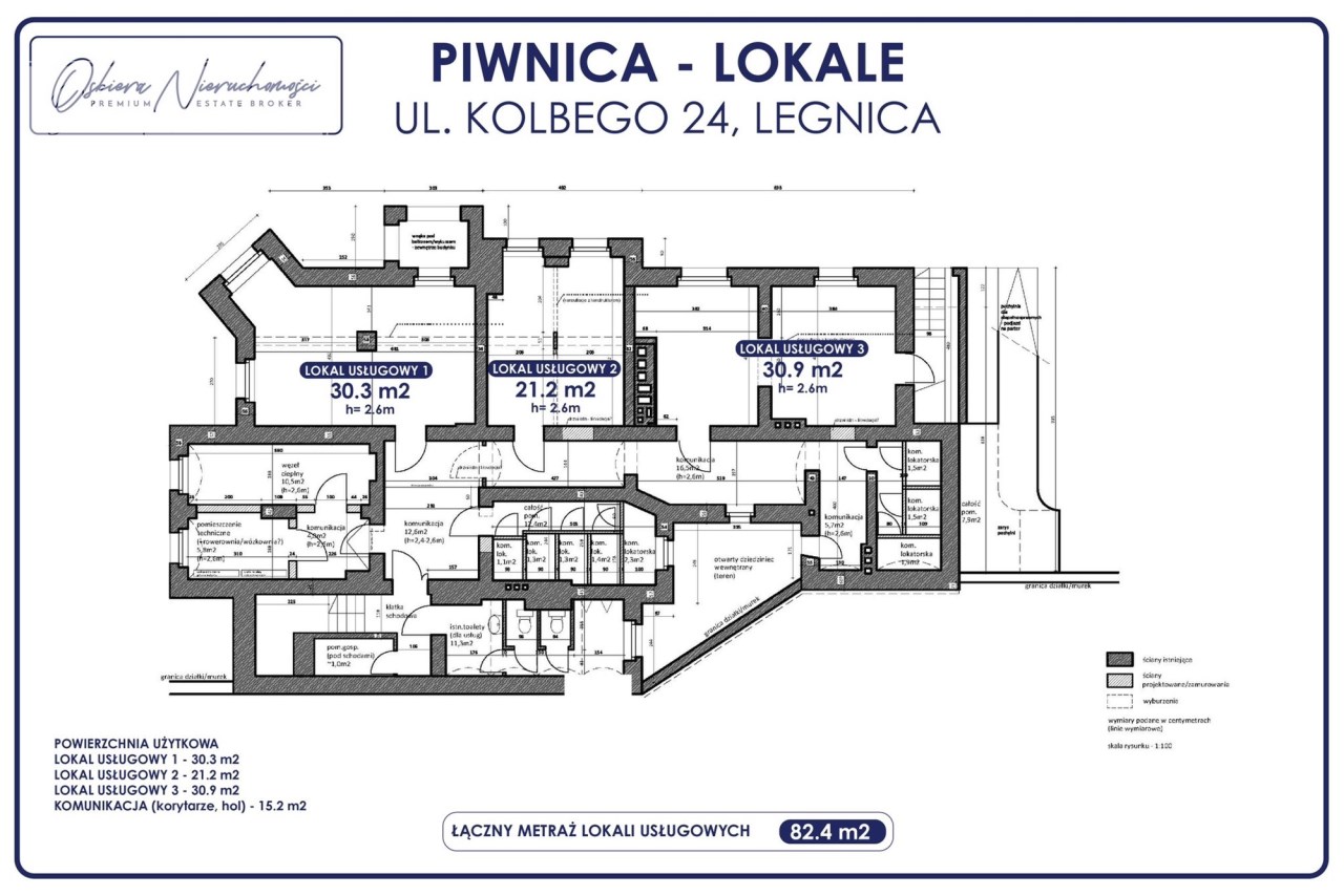 Kondygnacja 1 (piwnica) - Lokale usługowe: